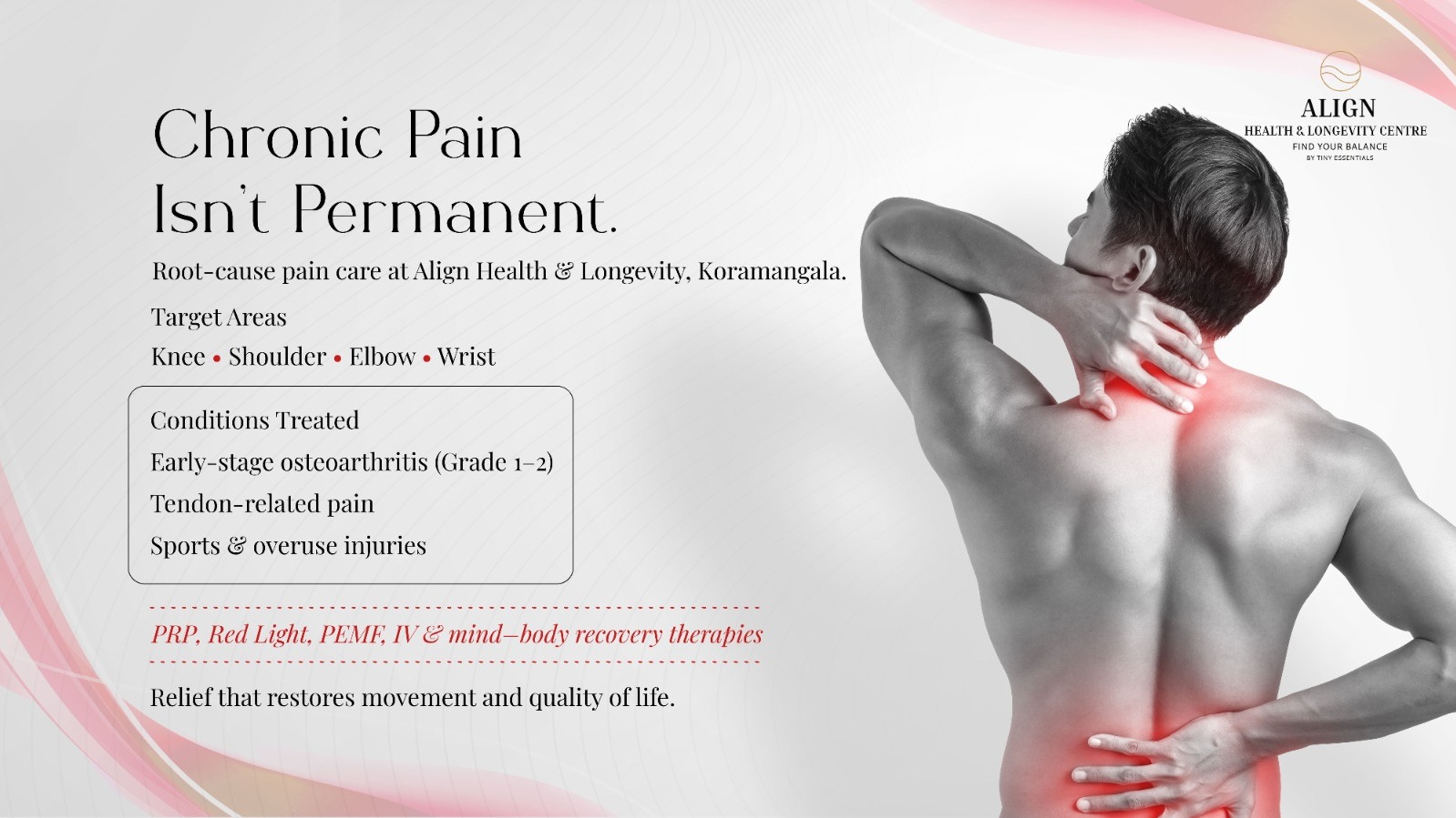 Align Health and Longevity Centre by Tiny Essentials, is a science backed health, longevity & wellness clinic offering functional, regenerative, and longevity-based therapies. Our core mission is to merge modern scientific innovations with time-honored traditional practices to redefine holistic healthcare. We specialize in preventive checkups, anti-aging treatments, chronic disease management, and cellular healing using advanced tools like PEMF, Red Light Therapy, Compression Therapy, rTMS Therapy, IV Therapy, Stem Cells Therapy & Exosomes.With a team of health, longevity, wellness professionals and integrative therapists, we provide customized treatment protocols based on diagnostics an...